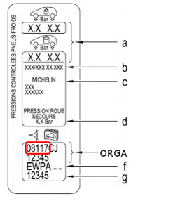 9) Le nombre de DAM est disponible sur un autocollant fixé à l’avant du côté conducteur / montant de porte arrière qui comprend également la pression des pneus, etc. Voici le numéro de DAM est numéro à 5 chiffres marqué en rouge dans l’image ci-dessous.